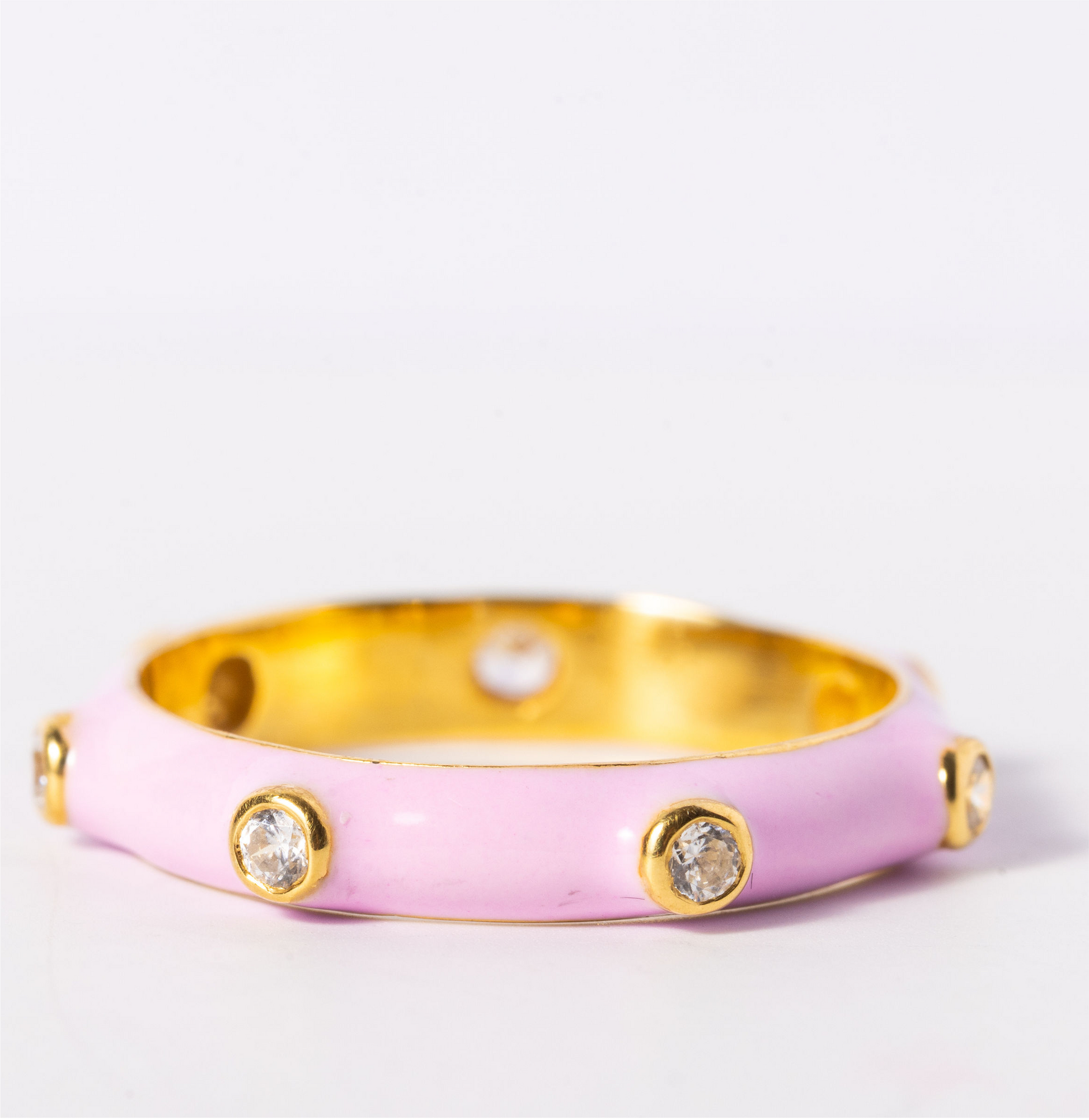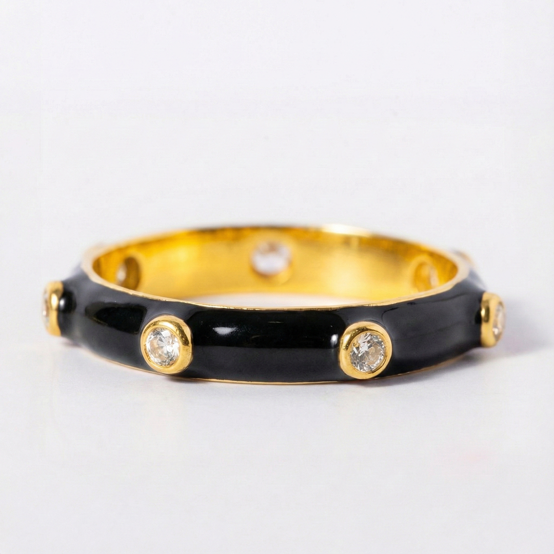 A slim enamel band with bezel-set gems. Annabelle balances sleek enamel shine with diamond sparkle, designed to give every stack a fresh twist of color and light.